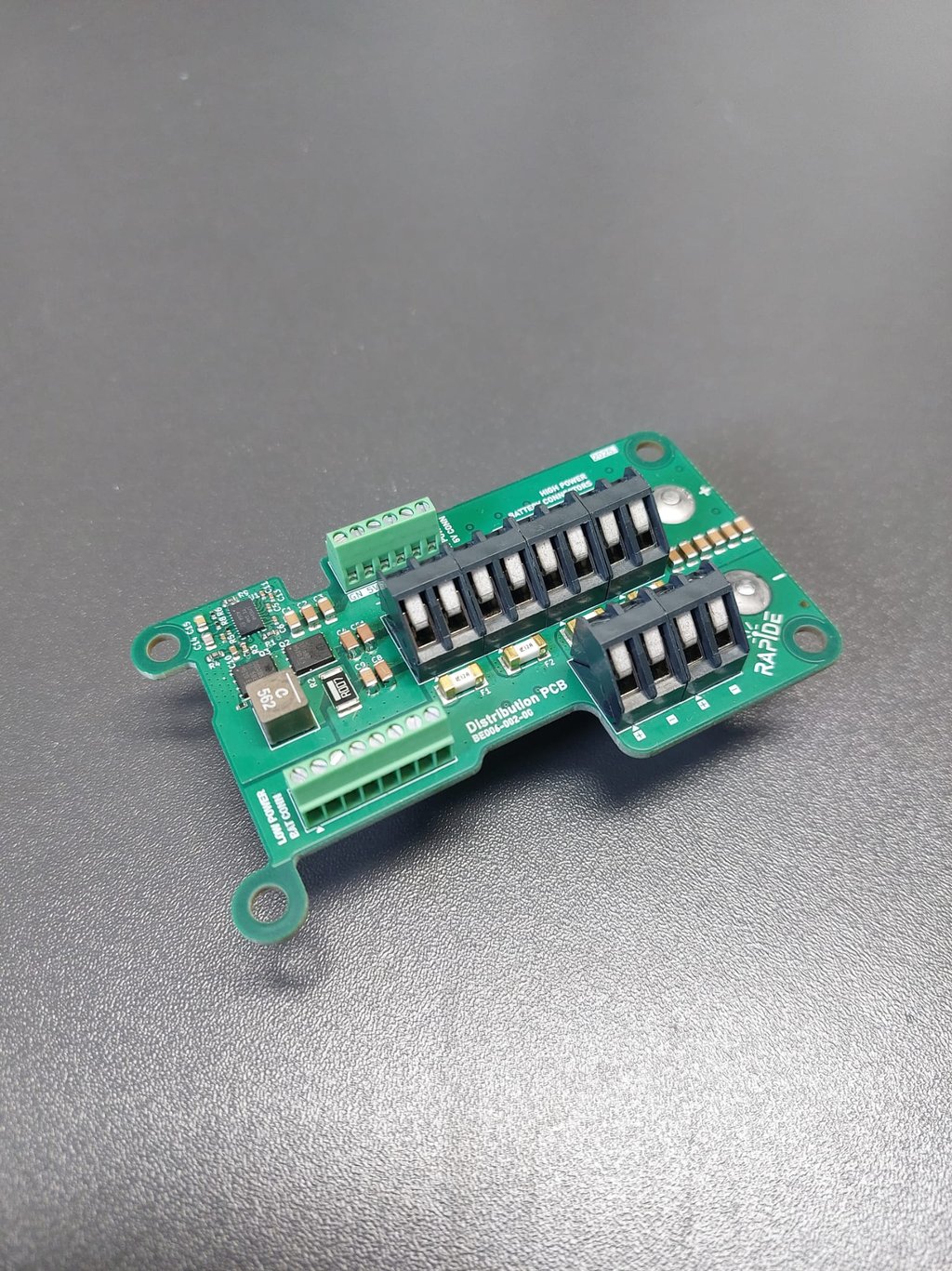 Power distribution from a Battery Management PCB with input voltage conversion. It enables safe and reliable power supply to multiple loads within a single system.