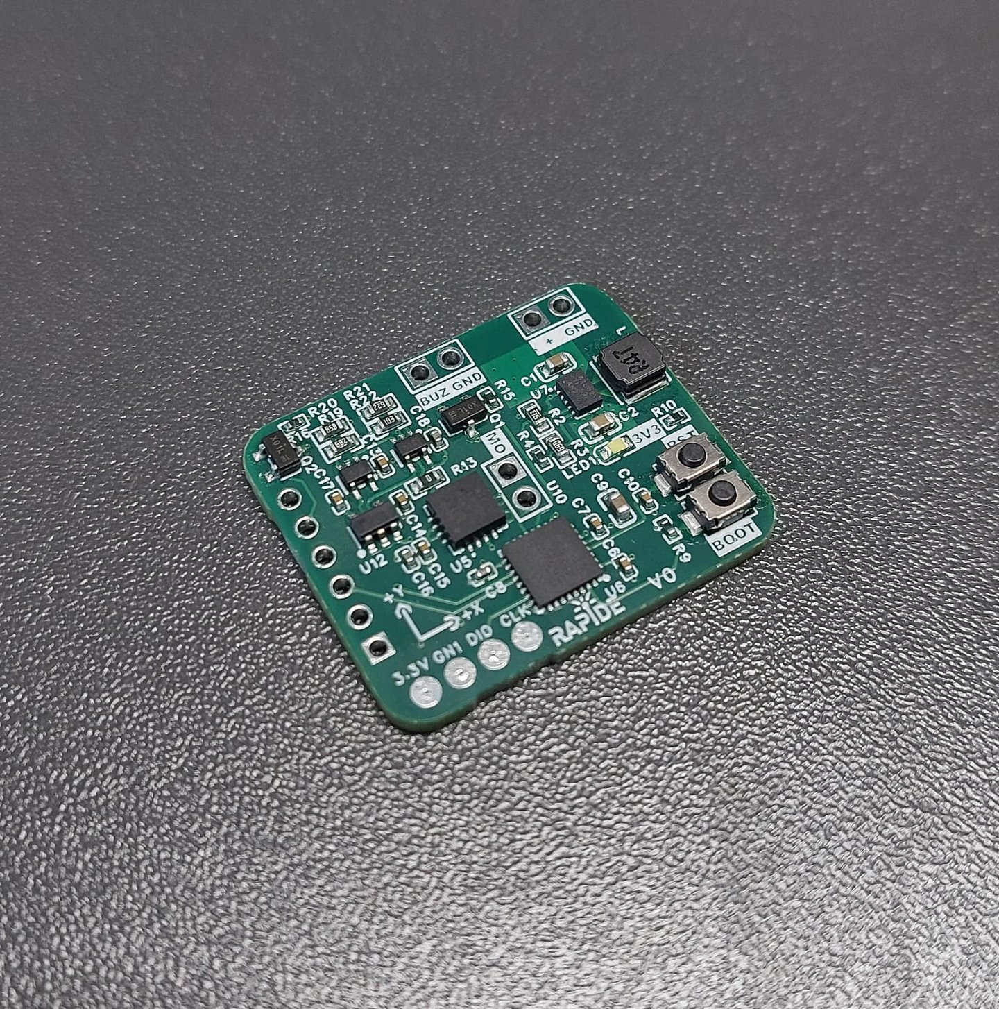 A low-power PCB for communication with a GPS module and generation of an audio signal proportional to movement speed. The system processes GPS data and controls the output signal in real time, while an integrated accelerometer enables a wake-up function from low-power mode.